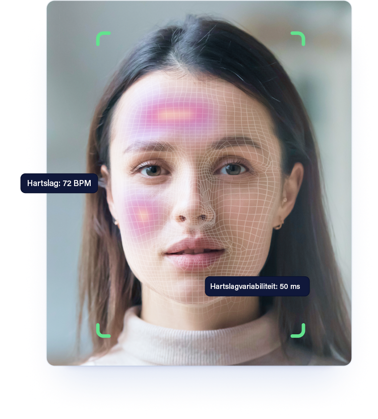 Effectuez le scan de votre visage à l’aide de la caméra de votre smartphone ou de votre ordinateur : cela ne prend que 20 secondes. En très peu de temps, vous recueillez de nombreuses données, comme votre fréquence cardiaque, votre rythme respiratoire, votre tension artérielle,…